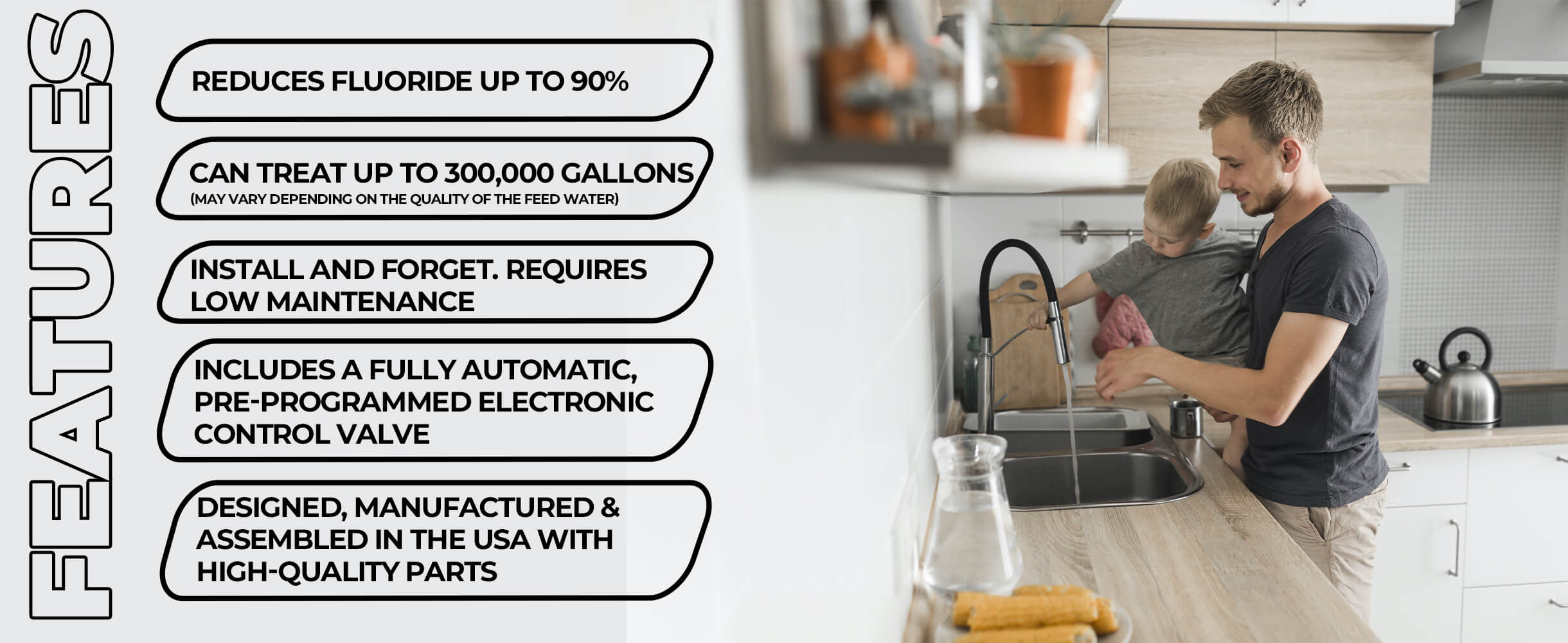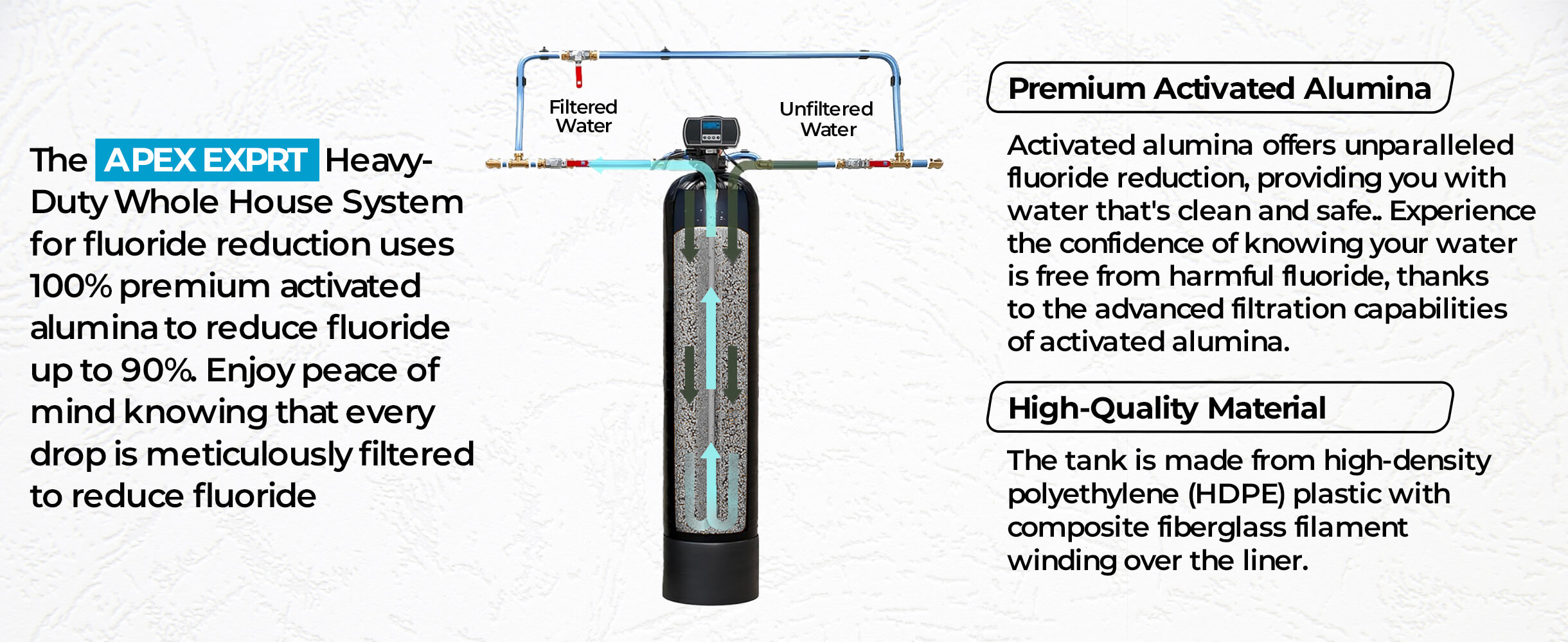 - Uses high-capacity, premium fluoride reduction resin.