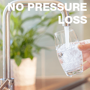 - Delivers high flow rates & very low pressure drop. The whole house filter requires a feed water pressure of 80 psi to produce a flow rate of 12-15 GPM. It also has a large water filter life span of about 8-12 months. (May vary depending on the quality of the feed water.)